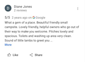 Catering for tents, motorhomes and caravans, we provide hook ups, toilets, showers & washing up facilities.Â